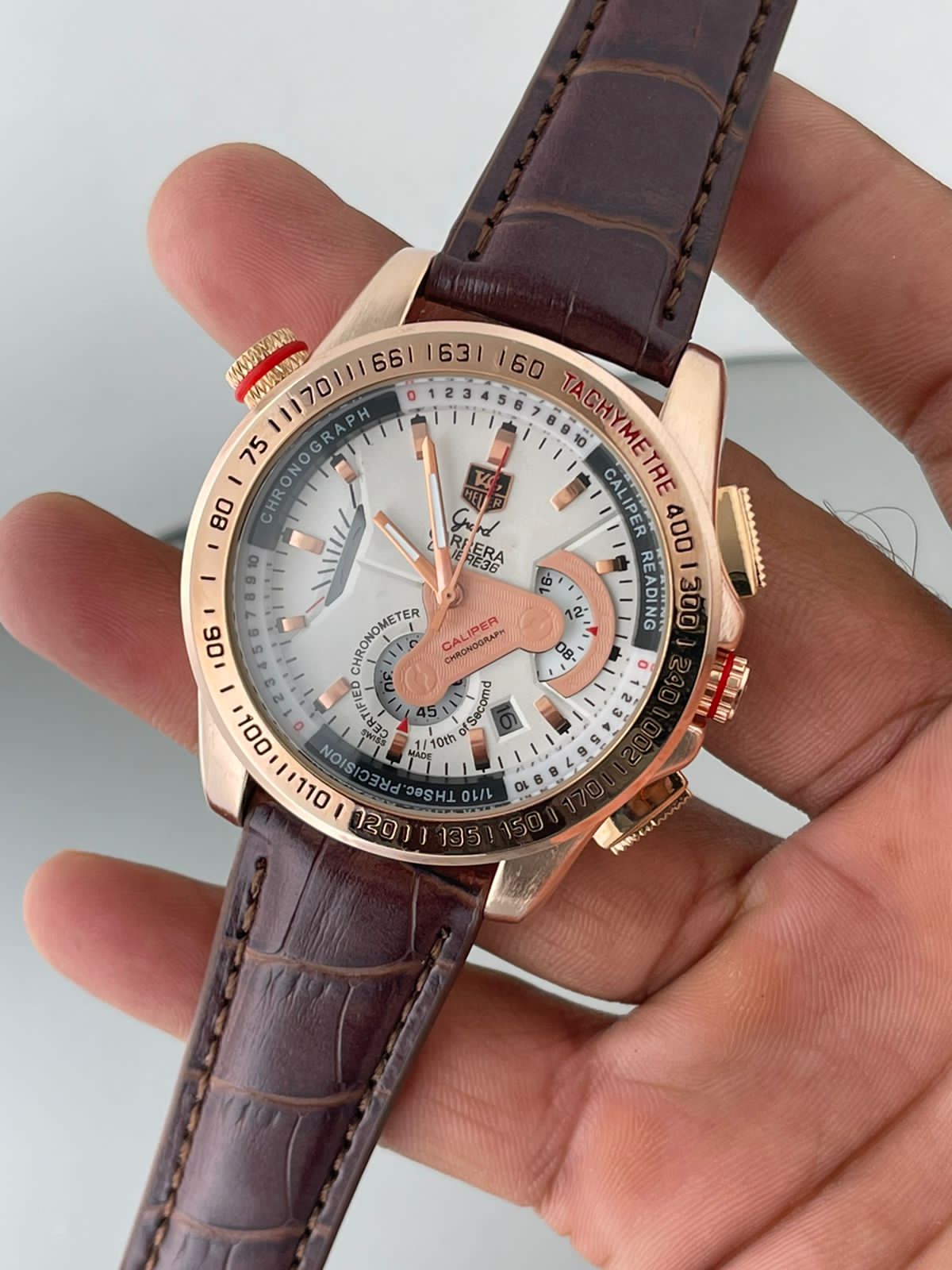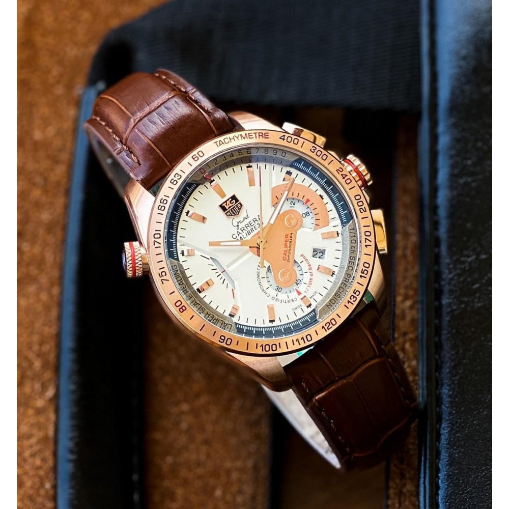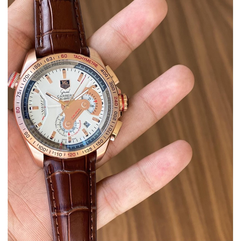 Tagheuer GRAND CARRERA Caliber 36 Racing Edition Quartz Watch White Chronograph and Brown Strap Dated Watch For Men's -TAG-IT-7879_Men's Wristwatch