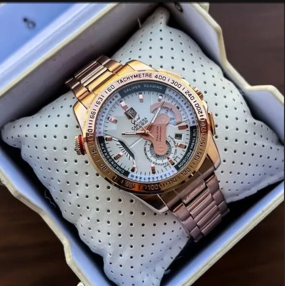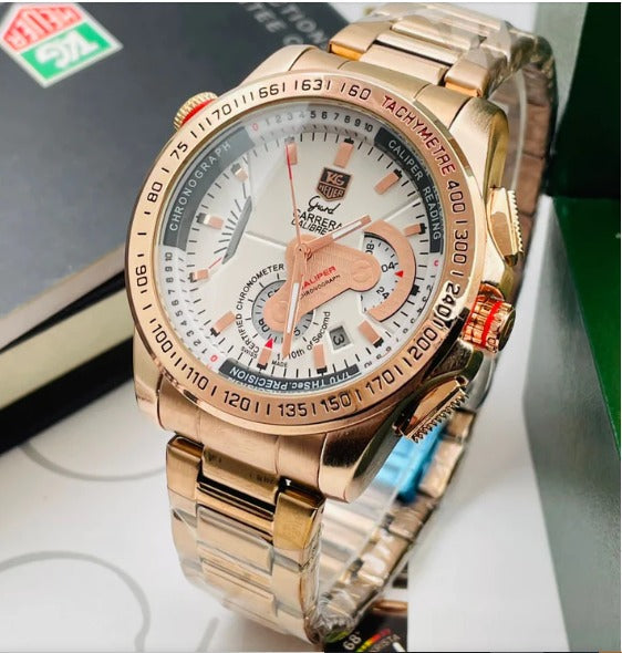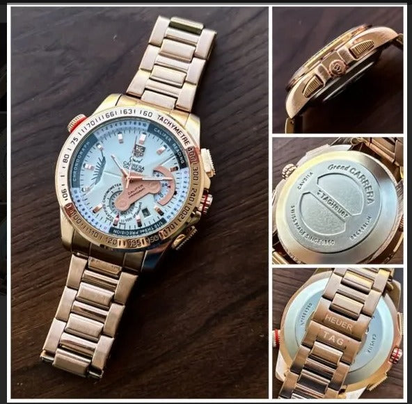 Tagheuer GRAND CARRERA Caliber 36 Racing Edition Quartz Watch White Chronograph and Stainless Steel Rose Gold Strap Dated Watch For Men's TAG-TH-9082 Men's Wristwatch