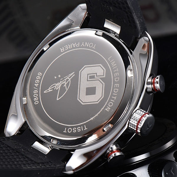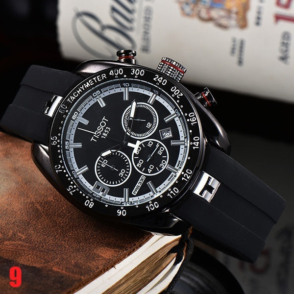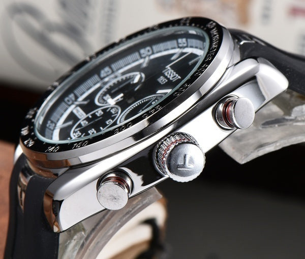 Tissot TS-7077 Chronograph Dated Watch With Black SIlion Stainless Steel Case Mens Watch Black Date Display Watch For Men's- Formal Look Watch