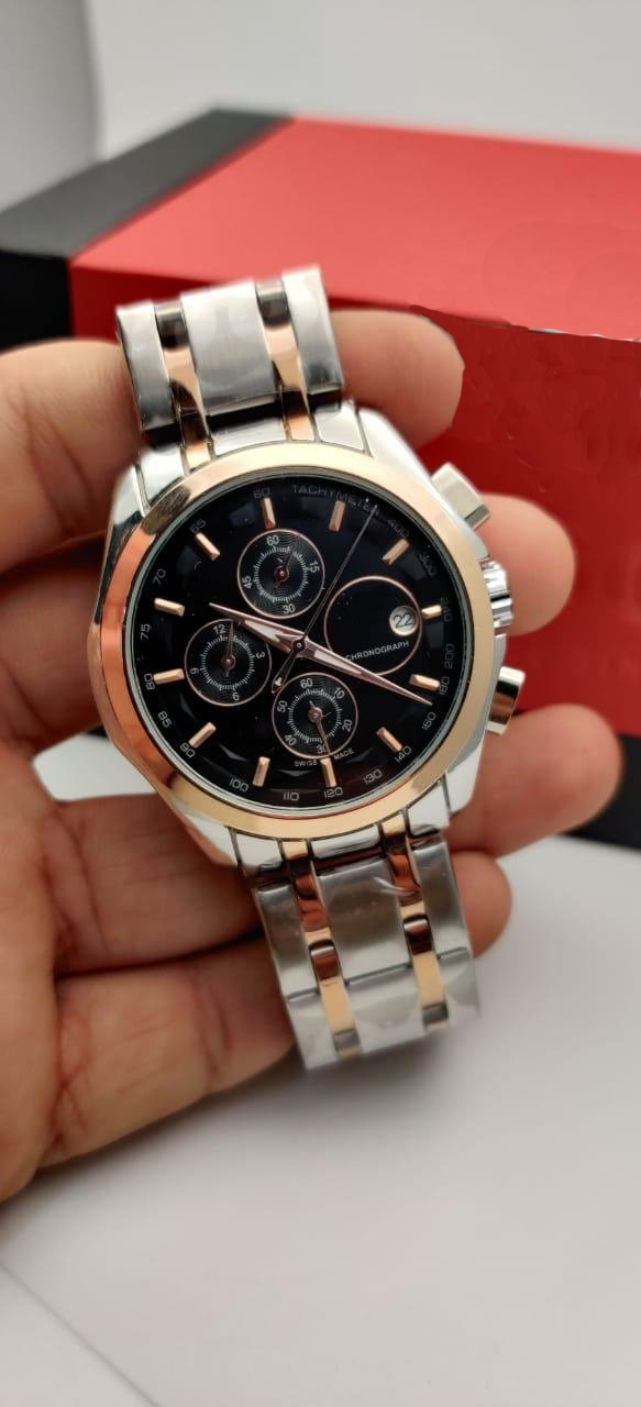 Tissot Chronograph Dual Tone Men's Watch for Man TS 321SG GB Silver Rose Gold Black Dial 1853 Gift