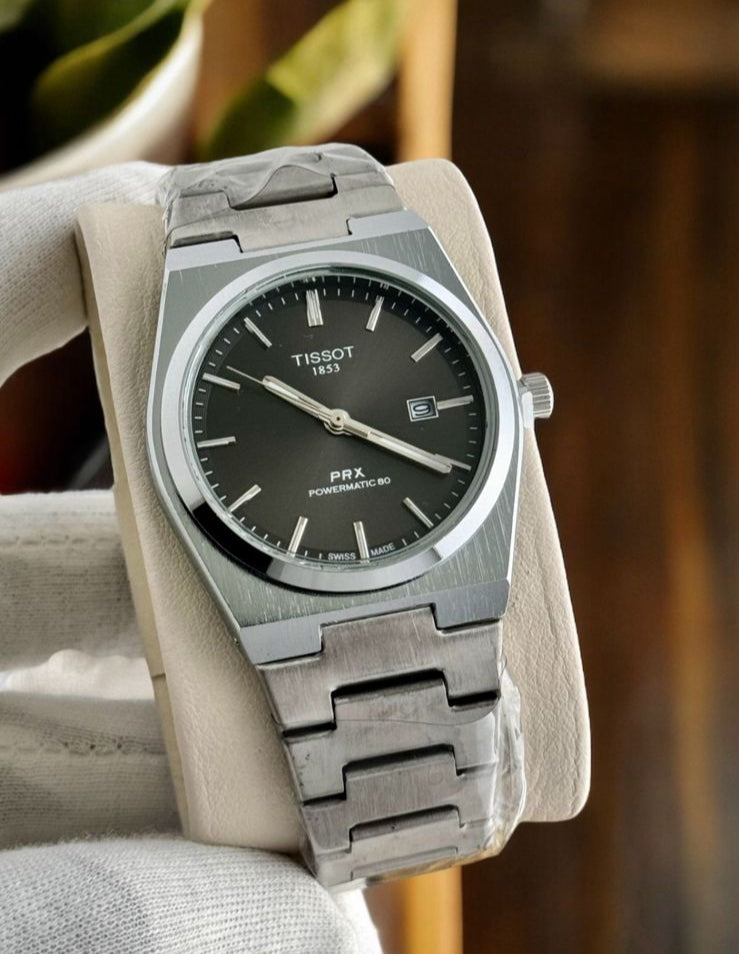 Tissot PRX Powermatic 80 Black Dial Silver Steel Strap Watch for Men - TS-4102